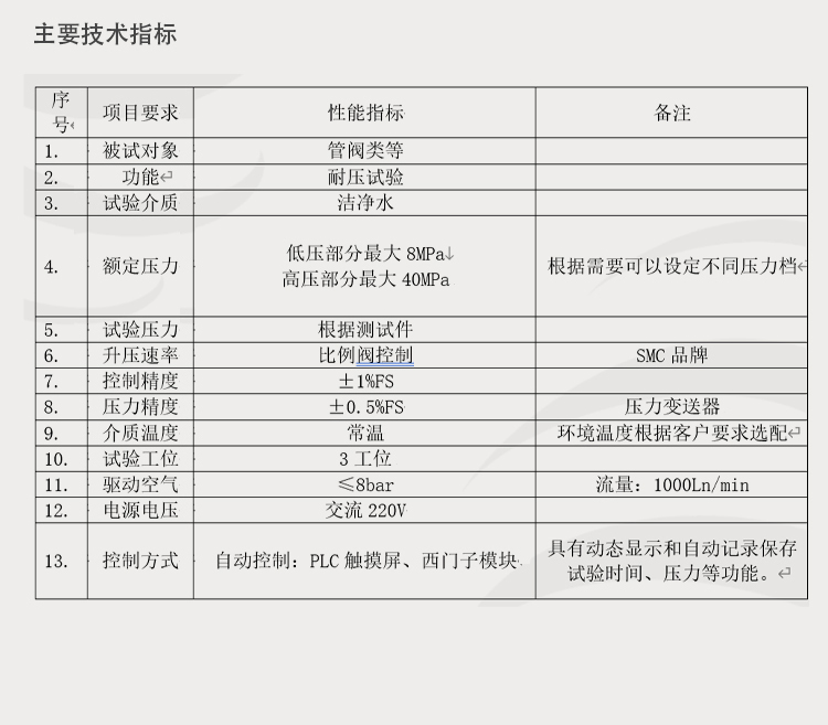 軟管打水壓測試臺-水壓強度技術參數