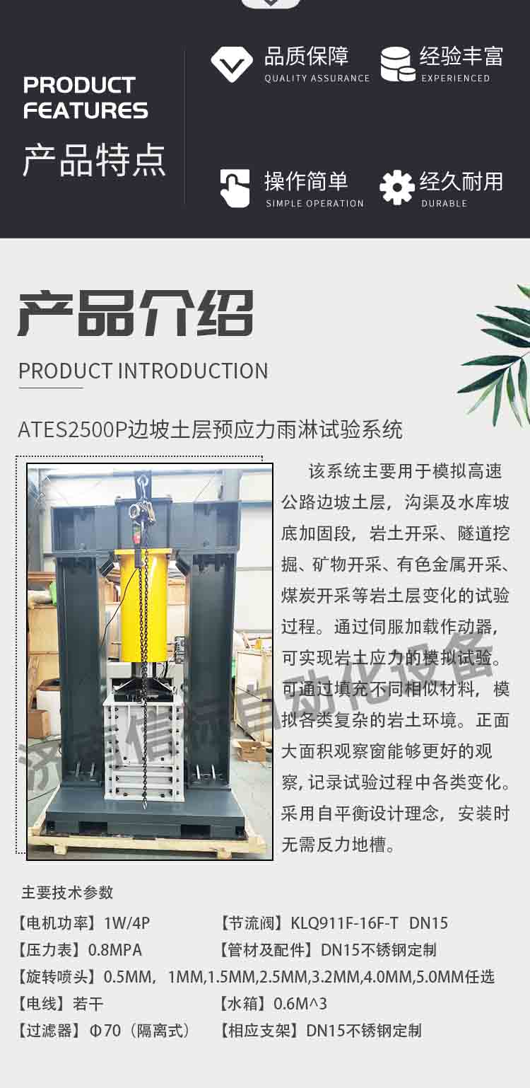 當前位置:首頁 > 產品中心 > 邊坡力學性能試驗機 邊坡土層預應力雨淋試驗系統