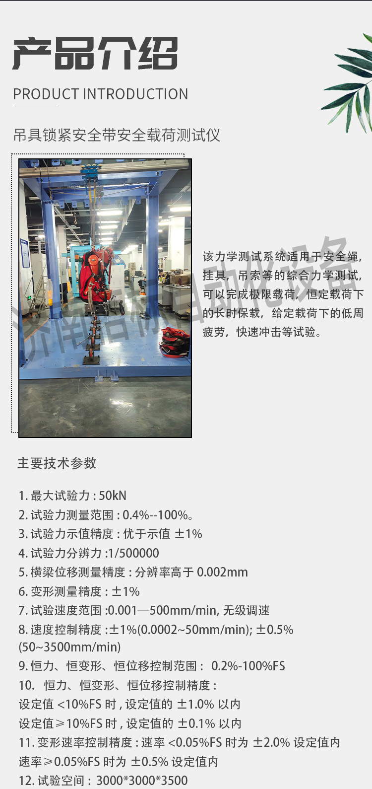 當前位置:首頁 > 產品中心 > 吊具鎖緊安全帶安全載荷測試儀 安全吊具力學性能測試系統