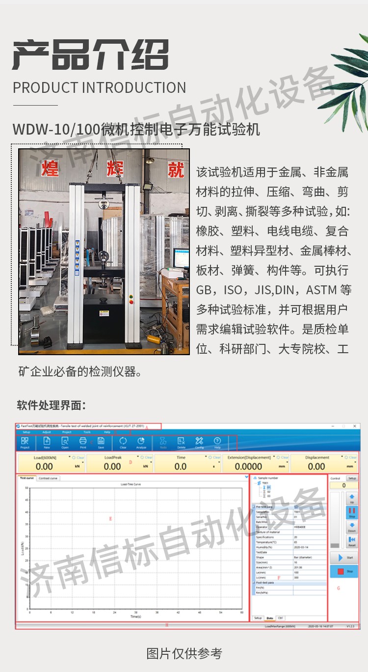 該試驗機適用于金屬、非金屬材料的拉伸、壓縮、彎曲、剪切、剝離、撕裂等多種試驗,如:橡膠、塑料、電線電纜、復合材料、塑料異型材、金屬棒材、板材、彈簧、構件等。可執行GB,ISO,JIS,DIN,ASTM等多種試驗標準,并可根據用戶需求編輯試驗軟件。是質檢單位、科研部門、大專院校、工礦企業必備的檢測儀器。