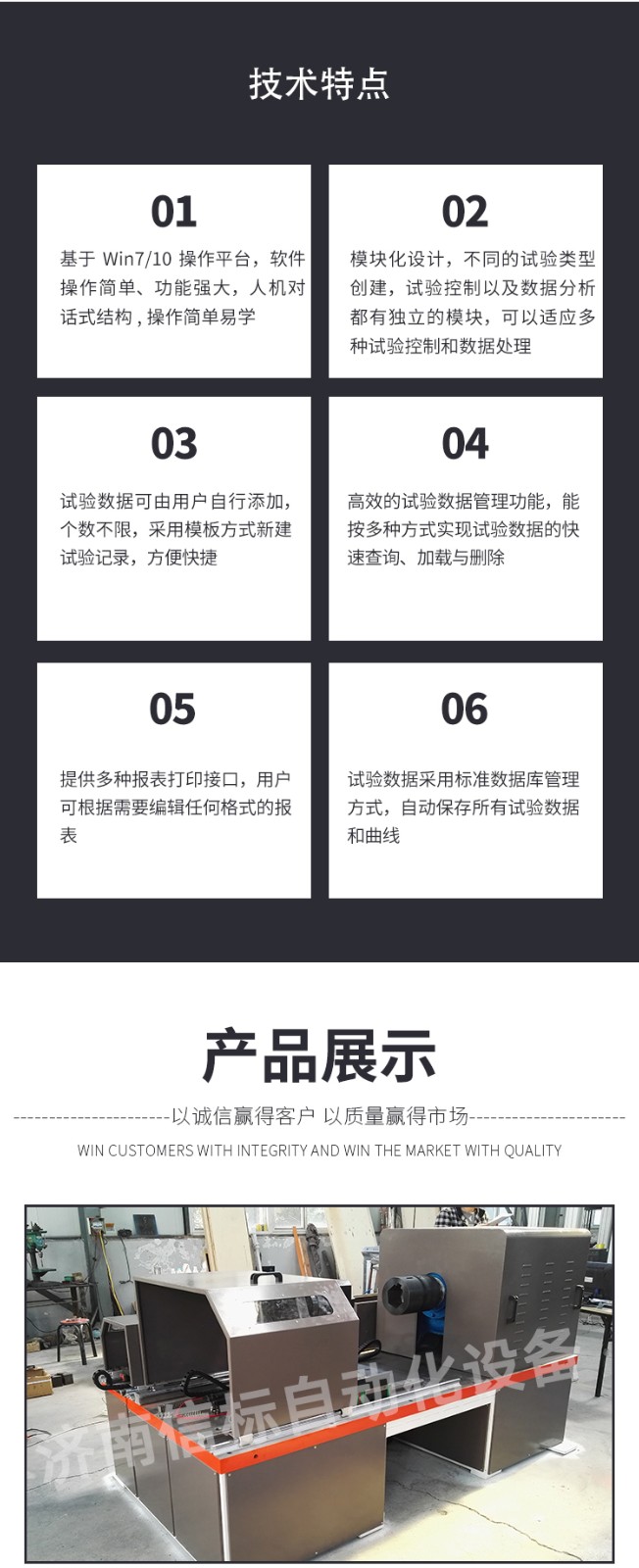 濟南信標自動化設備有限公司主要生產:動靜態萬能疲勞試驗機,接骨板彎曲試驗機,縫合線拉伸疲勞試驗機,髖膝關節磨損試驗機,電子萬能試驗機、液壓萬能試驗機、巖石三軸、四軸,電液拉力試驗機,材料試驗機,高低溫蠕變,高低頻疲勞,拉伸、扭轉、杯突等二十多個系列兩千多個的品種。